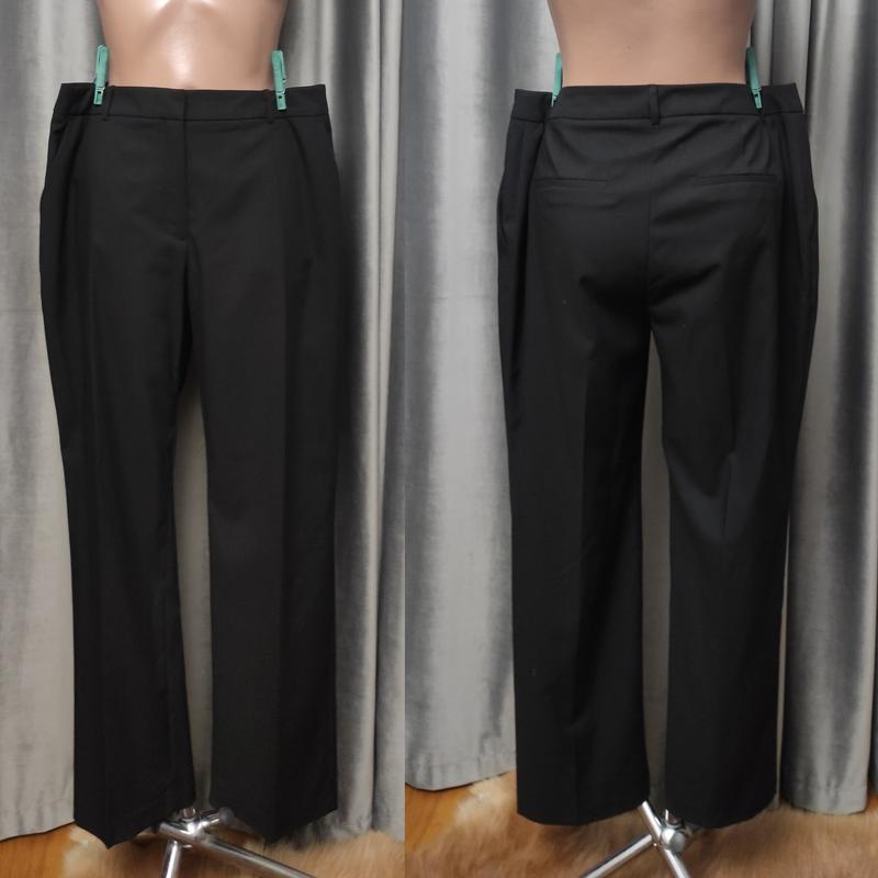 Стильные базовые черные женские брюки премиум серии, состояние идеальный, дефектов и следов носки нет Полуобхват талии -45,5 ( максимум 47, талию можно корректировать поясом есть петли) Полуобхват бедер -59 ( максимум 65,5) Высота посадки -29/45 Длина по внутреннему боковому шву -79 Длина по внешнему боковому шву -107 Полуобхват по низу штанины -22,5