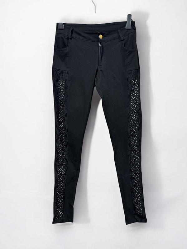 Эластичные черные брюки с кружевной вставкой Китай Размер Л, но сядет и на больший 65 коттон, 35 полиэстер Длина 101/80 Пот 37-52 Поб 48-64 Посадка 21/30,5