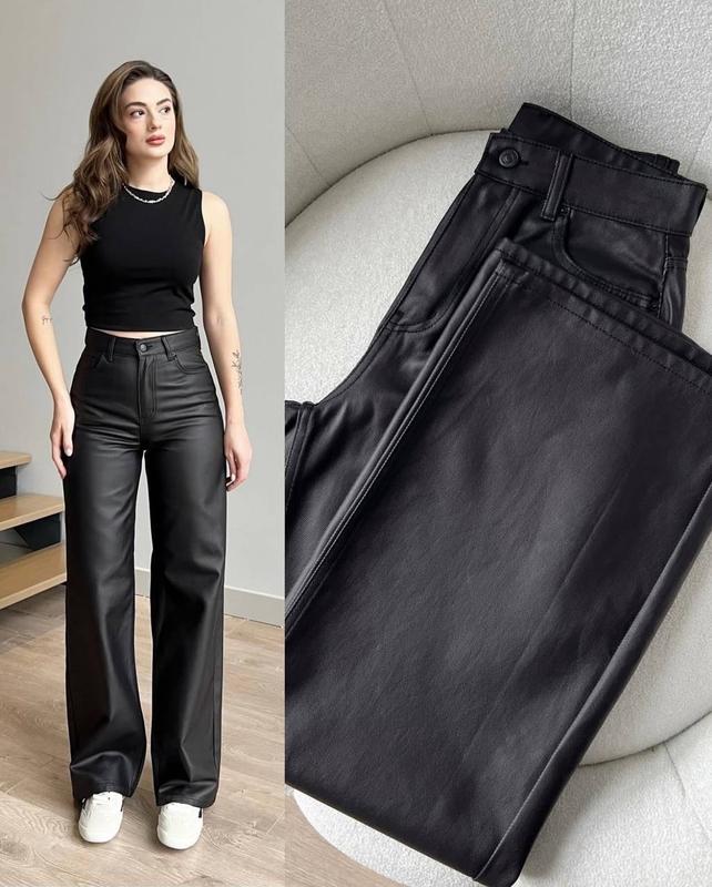 Новинка 😍 Штани Мод.544 Цвета: черный Размеры: 42-44, 46-48 Ткань: матовая эко кожа Цена: 660 грн Матовые кожаные брюки свободного кроя💔 Высокая посадка идеально подчеркнет вашу фигуру, а удлиненные брюки визуально сделают вас выше😉