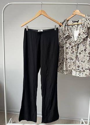 Брюки на высокой посадке, клешного фасона к низу На талии внутренняя резинка, застежка на молнии сбоку Размер: 38, маломирит на 36 чуточку Состояние: идеальный