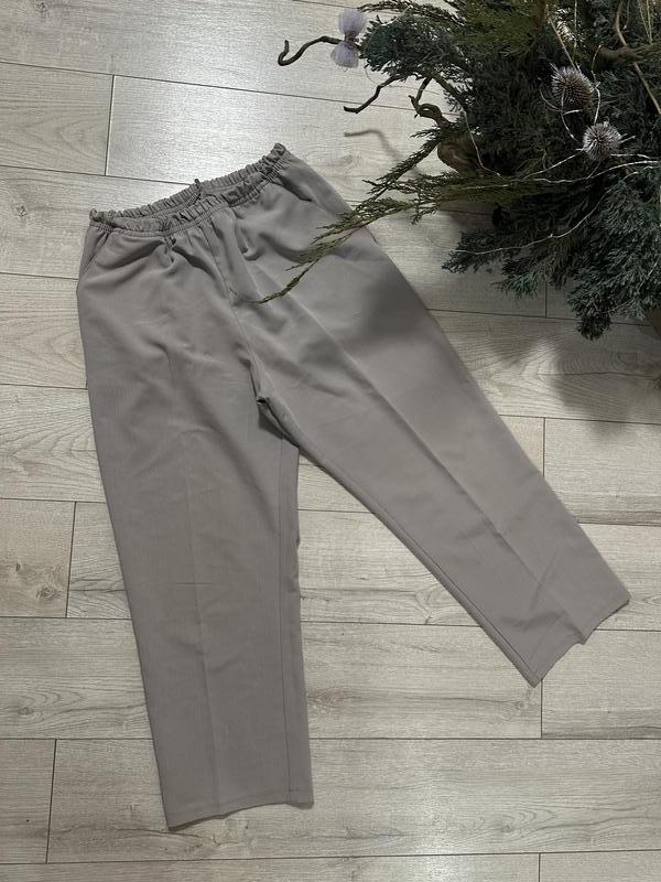 Брюки брюки или капри/ Не тянется, не плотные/ Есть карманы/ Подойдет на см европейский ориентируйтесь по замерам/ Длина 87 см/ Пот 33 см/ Поб 55-56 см/ Знизу штанини 21 см/ Высота посадки 30-38 см/ Шаговой 62 см/ Продается без возврата/