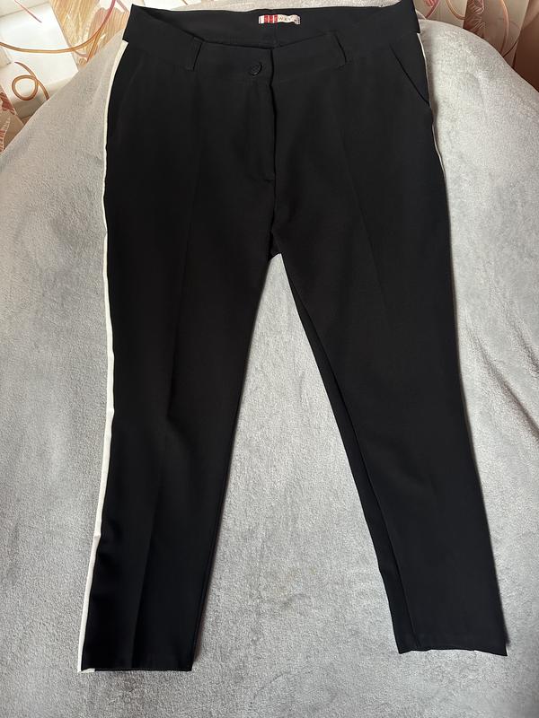 Продам чорні брюки з білими лампасами по бокам, розмір М