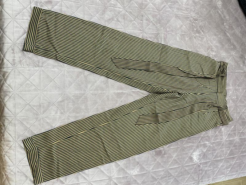 Брюки в полоску женские,Манго, размер европейский ХS, америк. ХXs, но ориентируйтесь лучше по замерам. Состояние - как новые, одевала один раз. Замеры: талия 33, на спинке- резинка, длина 97, длина по внутреннему шву 70. Ткань не тянется, для зимы не подойдет. Отпрашиваю по Украине.