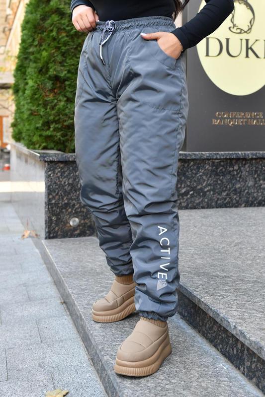 Штани Розміри: 0(44-46), 1(48-50), 2(52-54), 3(56-58), 4(60-62) Матеріал: плащова тканина на синтепоні Утеплювач: синтепон щільністю - 100 г/м2 Кольори: ГРАФІТ Деталі виробу: теплі штани на еластичному поясі, талія регулюється шнурком, дві робочі кишені. Заміри за виробом: Довжина з бокового шва: 102,103,104,105,106 см 1 о/р- О.Талії 66-104 О.Стегон 104 1 р/р - О.Талії 74-112 О.Стегон 112 2 р/р - О.Талії 82-120 О.Стегон 120 3 р/р - О.Талії 90-128 О.Стегон 128 4 р/р - О.Талії 98-136 О.Стегон 136 эл