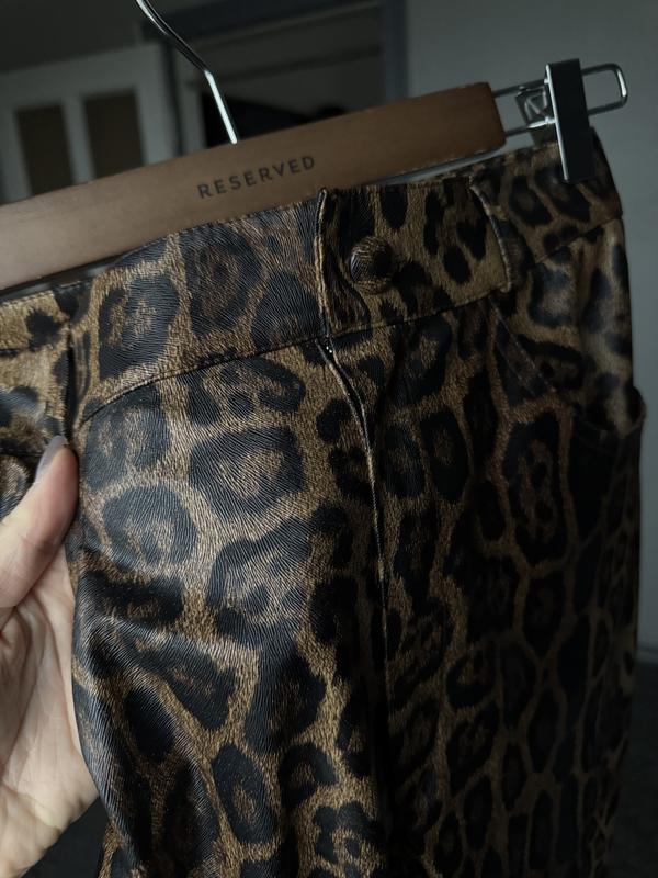 Леопардові штани українського бренду Стан ідеальний, без дефектів прямі брюки леопардові з еко шкіри низ йде необроблений посадка висока
