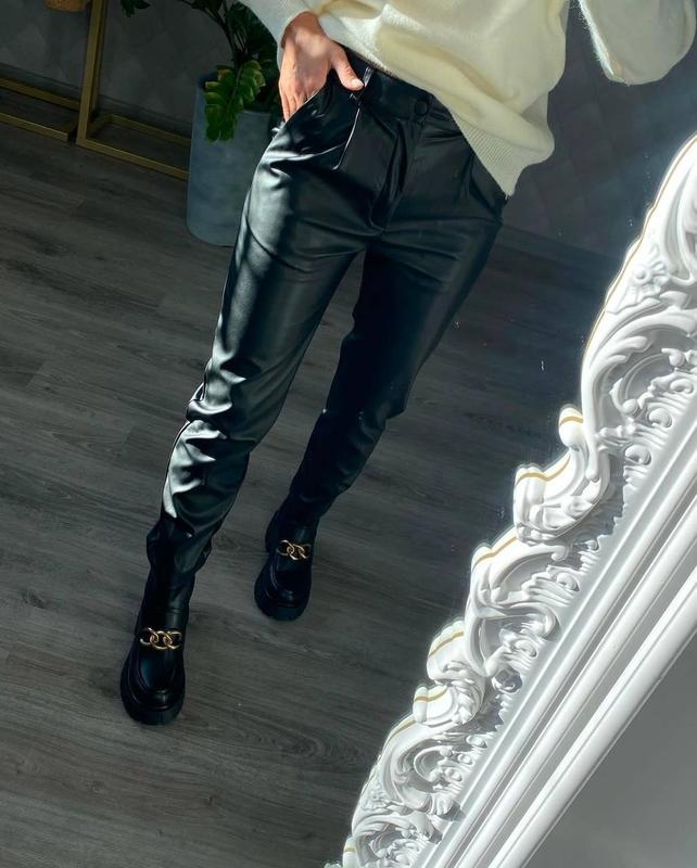 Классические брюки из матовой экокожи - 495грн ➡️Мод. 7111 ➡️Размеры: 42-44, 44-46, 46-48 ➡️Ткань: матовая экокожа ➡️Цвет: черный ➡️Длина изделия 100см Первый размер ОС до 92см Второй размер ОС до 99см Третьй размер ОС до 105см По желанию ремень плюс 40грн ‼️Лучшие цены, новинки, наличие код30-1955(ТГрФ)