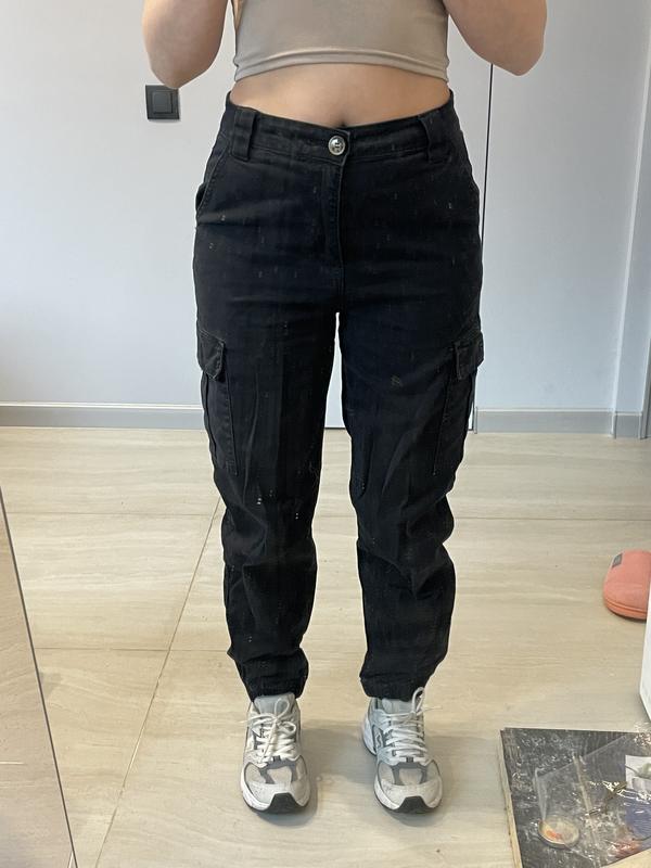 Штани темно-синього кольору, бв, стан ок. Знизу на резинці, мають кишені. Зручні, тканина не тягнеться. Розмір м Одягнуто на зріст 155 см Мої параметри Стегна 98 Талія 73
