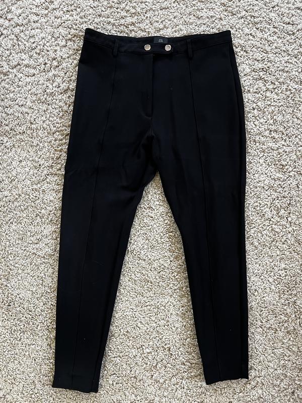 Брюки гарно тягнуться,в хорошому стані ,нюансів не знайшла,довжина 88см ,пів обхват стегон в не розтягнутому вигляді 50(+добре тягнуться)пів обхват талії 40!Є петлі під ремінь !стильно виглядають