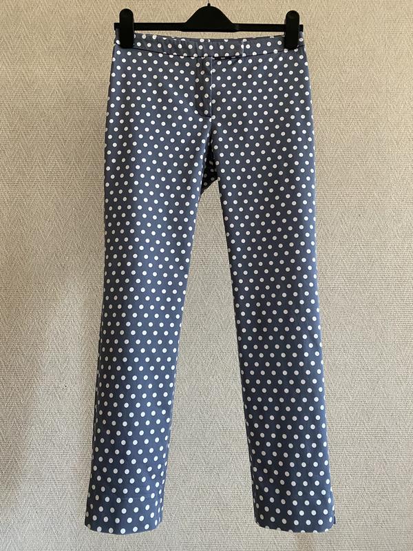 ПОТ 36 см, ПОБ 44 см, высота посадки спереди 22 см, сзади 35 см, длина по внешнему шву 90,5 см, внутреннему 68 см, низ по размерам 16 см Состав: 98% cotton 2% elastane