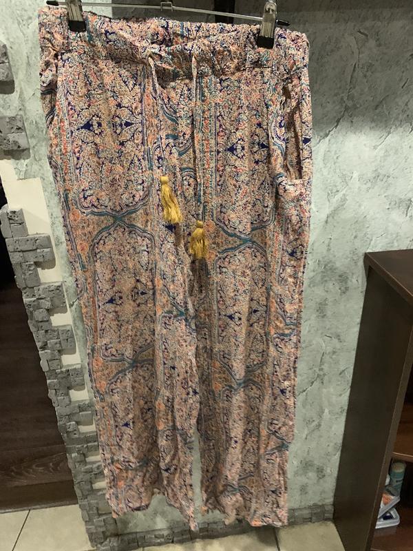 Брюки летние 48, талия на резинке , полуобхват талии 48, полуобхват бедер 60, длина 105, не тянутся, брюки новые