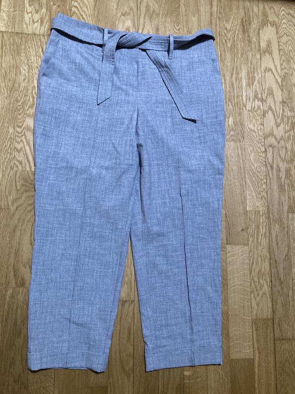 Вкорочені жіночі сірі брюки Next розмір 16. З поясом. Талія 48, бедра 56, довжина 96, крокова довжина 66, ширина штанини знизу 21. 88 поліестер, 8 віскоза, 4 еластан