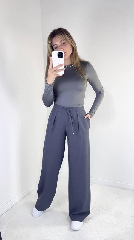 Штани Арт 92 Ткань костюмка тиар Цвет черный, серый, бежевый Размер 42,44,46,48,50 Брюки сзади талия на резинке для более удобной посадки, с двумя карманами в боковых швах, брюки свободного кроя, ткань очень приятная к телу, красиво спадает, немножко тянется