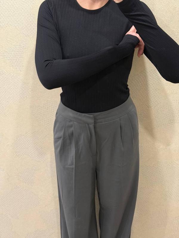 Брюки палаццо в сером цвете с идеальной высокой посадкой, отлично садятся по фигуре, ткань очень качественная, состояние новой вещи, размер м