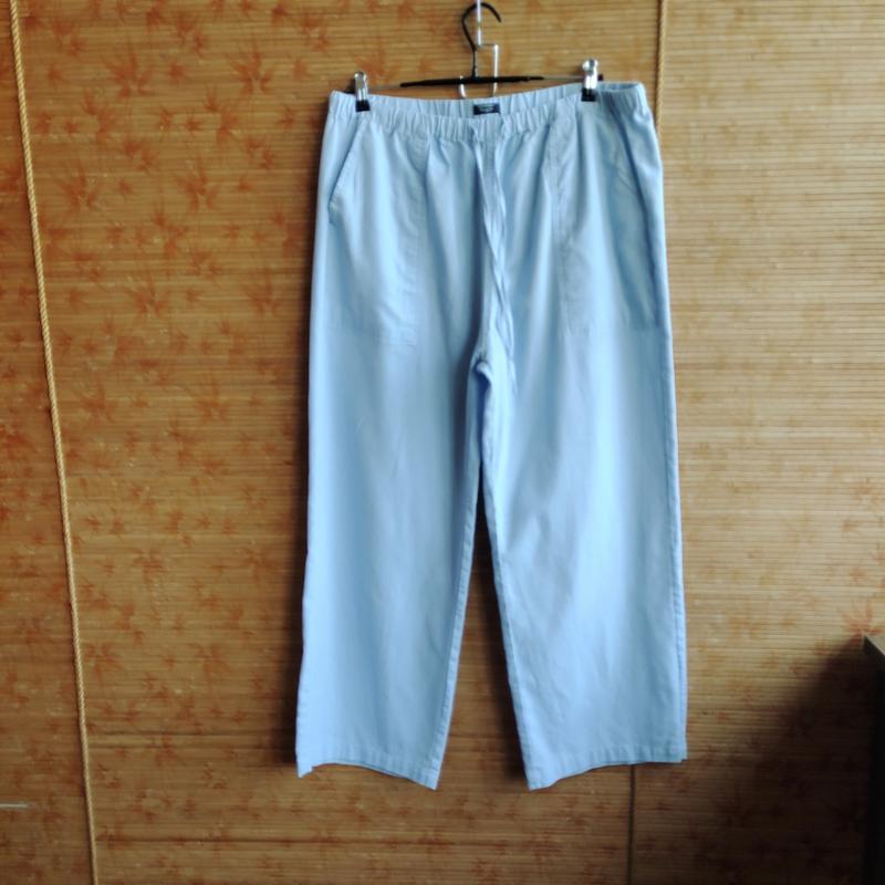 Голубые штанишки COOFANDY Пояс на резинке Состояние-Идеальный Размер-XXL Состав-98%Рами, ЗАМІРИ: Пот- 45СМ НОБ-60СМ Посадка- 34см Длина -100см Пошаговая длина -68мы Ширина низа калоши -28см