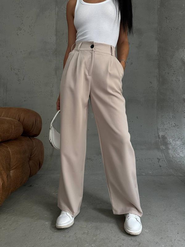 🔤🔤🌸 🔤🔤🔤🔤🪷 # 630EL Реальное живое фото 👑 ▪️Цвет: Беж, графит и черный🥰 ▪️Ткань: качественная дорога костюмка ▪Размеры: 42-44, 46-48 Топовая новинка брюки-палаццо в самых популярных и базовых цветах 👑 Сами стильные и любимые брюки📸 Очень красиво садятся по фигуре 👠Пуговицы и карманы НЕ обманка👍Можно надевать под пояс Качественная ткань ❤️
