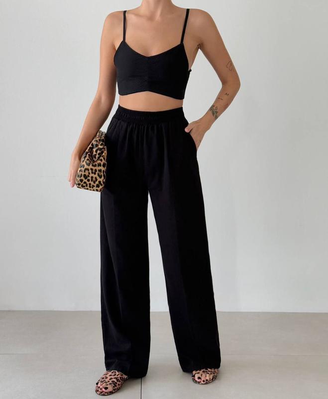 Штани👖 Модель 7850 Цена 1000грн 💸 Производитель Турция 🇹🇷 Размер s, m, l Цвета: черный и молочный Брюки имеют свободный крой и выполнены из легкой, дышащей ткани, что делает их идеальными. Посадка высокая, с удобной эластичной резинкой на поясе, что обеспечивает комфорт при носке. Также брюки имеют боковые карманы, добавляя им практичности. Эта модель отлично подходит для создания повседневных или летних образов в минималистичном стиле. Состав 100% коттон Замеры: S ПОТ-31 см (до 41 см) ПОБ-54 см Длина -107 см M ПОТ -32 см (до 42 см) ПОБ- 55 см Длина -108 см L ПОТ- 33 см (до 43 см) ПОБ-56 см Длина -109 см Погрешность измерения +~1см