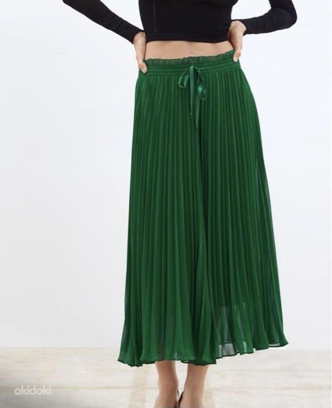 Юбка-кюлоты яркого зеленого цвета, не светится. Тканина легка, не мнеться. Будет удачно дополнением в стильных образах. Замеры Пот-38/50(меньше можно сделать, регулируется завязкой) поб-65 (по нижней подкладке) в целом свободный; длина-86