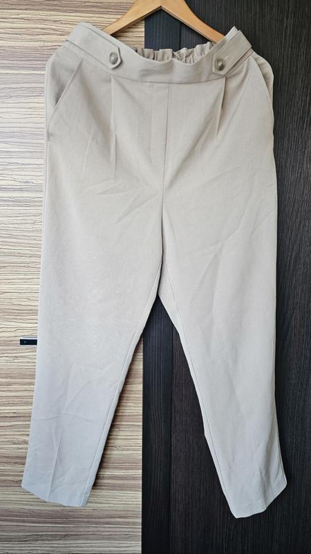 Брюки Длина 100 Талия 76 (сзади на ризнице) поэтому талия может быть больше. Стегна 102 Ткань немного тянется. Материал хорошего качества, слегка блестит.