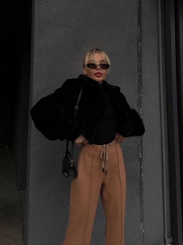 Новинка - эти брюки-клеш из плотной ткани сочетают в себе стиль и функциональность. Они отлично подчеркивают фигуру, делая силуэт стройнее благодаря высокой посадке. Универсальный дизайн позволяет носить их как в спортивном, так и в классическом стиле, создавая разнообразные образы для любого случая ❤️🔥 ▪️размер: 42-44, 46-48 ▪️цвет: черный, кэмел ▪️ткань: плотный тритокаж Алекс ▪️модель: 223 ▪️цена: 950 грн