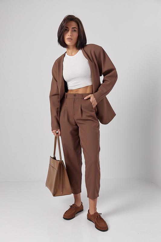 🍂женские брюки-бананы со складками – стильный выбор для элегантных и модных образов. Модель имеет классический крой с расширенными в бедрах и зауженными книзу штанинами, что создает изящный силуэт и подчеркивает фигуру. ✔Размер: XS, S, M, L 🪡длина внешнего шва – 96см 🪡длина внутреннего шва -68см 🧵Состав: 97% полиэстер, 3% лайкра 🌈Цвет: черный, коричневый 🧵Материал: Костюмна тканина 💳Цена:1460 грн Арт901091 ‼️Количество ограничено
