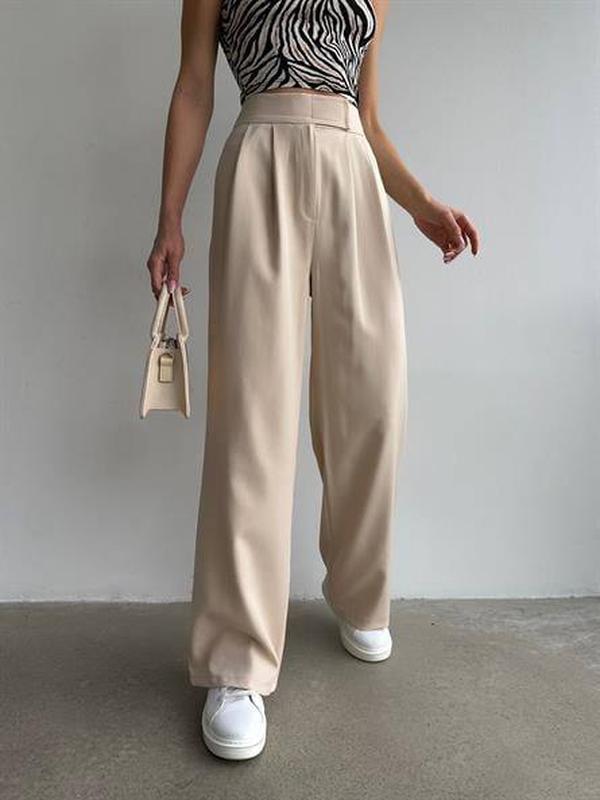 Брюки Модель: GR 8372 Розміри : 42-44,46-48 Колір: бежевий, чорний Тканина: костюмка Брюки класичні на високій таліі , але в саме 💕, мають стиль палаццо , вільні , неймовірно легко поєднати різними стилями взяття, верхнього одягу , класичними блазками, топами і худі . Застібається в поясі на липучку, ґудзик вже точно не відірветься в самий не зручний момент . Розмір :42-44 Обєм талії 70 см Обєм бедер 106 см Довжина 109 с м Ширина штанини - 29 см (58 см охват ) Розмір : 46-48 Обєм талії 76 см Обєм бедер - 114 см Довжина -109 см Ширина штанини 31 см ( 60 см охват )