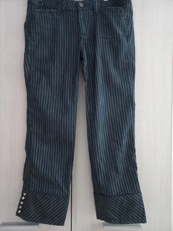 штани у смужку, з декором із ґудзиків