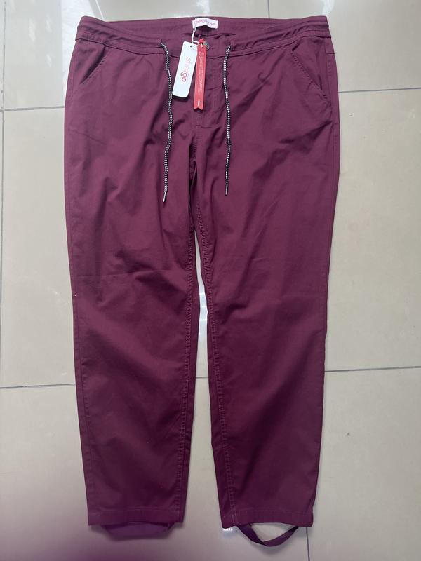Отличные джегенсы темнобордового цвета со шнурком, на молнии. По бірці 58-60. Упитанную более темный цвет. Имеют боковые карманы и задние. Пояс 114( еще тянутся на более), шаг 44, ОБ 142, длина 108. Фото не передает, присущую темнее
