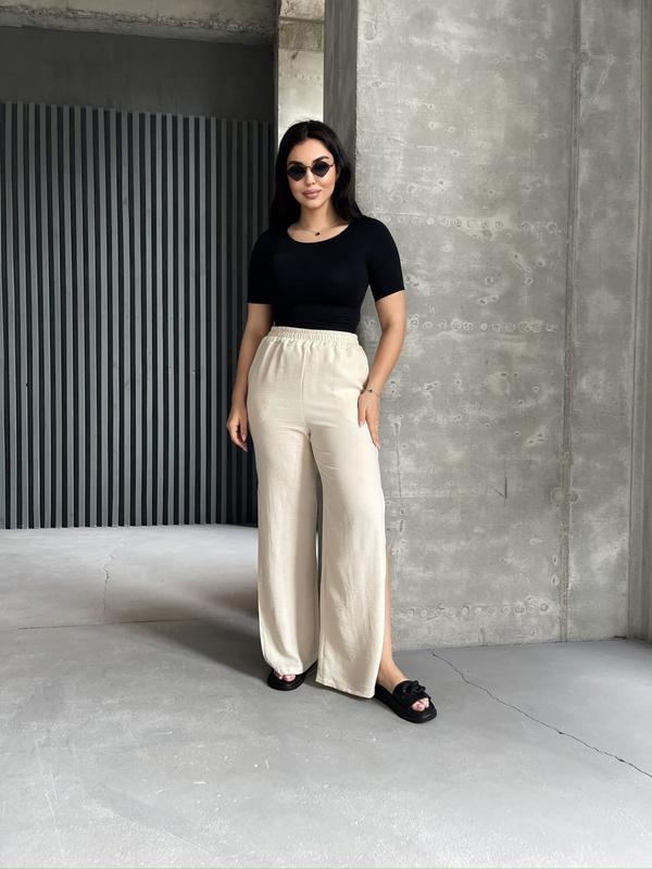 Мод. 1692 Штани. Реал фото. ✔️Ткань - Американский креп Бежевый 42-44, 44-46, 46-48 🧵Замеры мод 1692 : 📌Размер 42-44: Объем бедер 98 см, длина по боку 110 см, длина шага 78 см 📌Размер 44-46: Объем бедер 102 см, длина по боку 111 см, длина шага 79 см 📌Размер 46-48: Объем бедер 106 см, длина по боку 111,5 см, длина шага 79,5 см