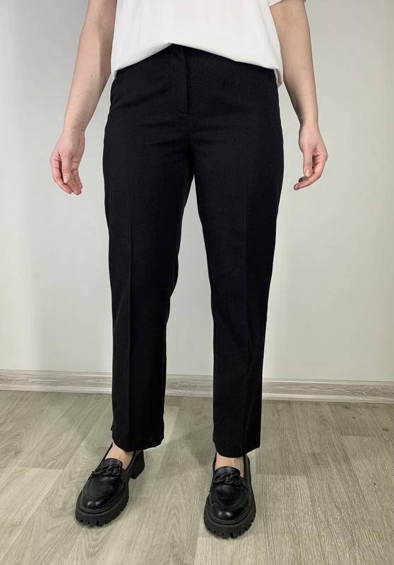 Брюки черного цвета Размер Л В составе 100% полиэстер Длина 97 см, полуобхват талии 40 см, полуобхват бедер 52 см, посадка впереди 26 см Состояние идеал Одето на размер Л, рост 167