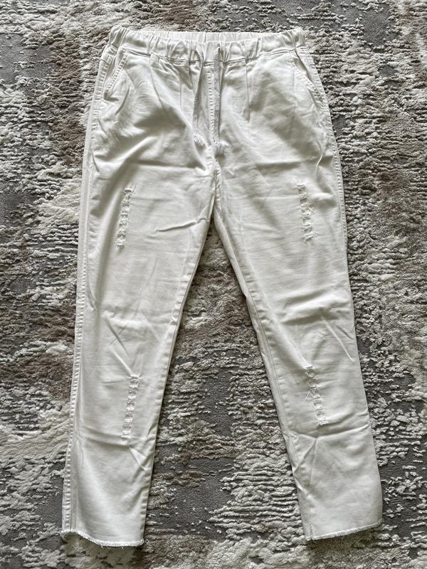 Штани молочного кольору, в ідеальному стані, на резинці + шнурівка.