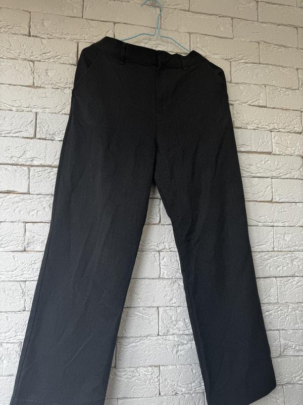 Брюки з дитячого відділу, але я носила їх на зріст 152 (95 бедра). Сидять не в обтяжку, а вільно. Талія регулюється за допомогою резинки. По запиту можу скинути фото на тілі. Дефект - підшитий край білою ниткою, можна розпороти і підшити заново.