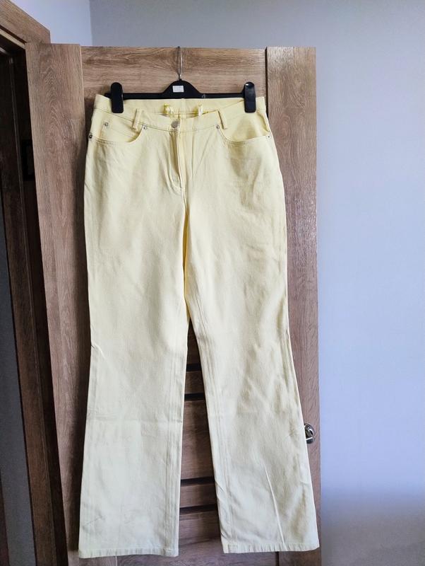 Розмір зазначено М, але підійдуть і на Л, тягнуться, НОТ-40см, НОС-50см, довжина-115см, покрокова-89см, ширина штанини внизу-25см, посадка-28/45см.