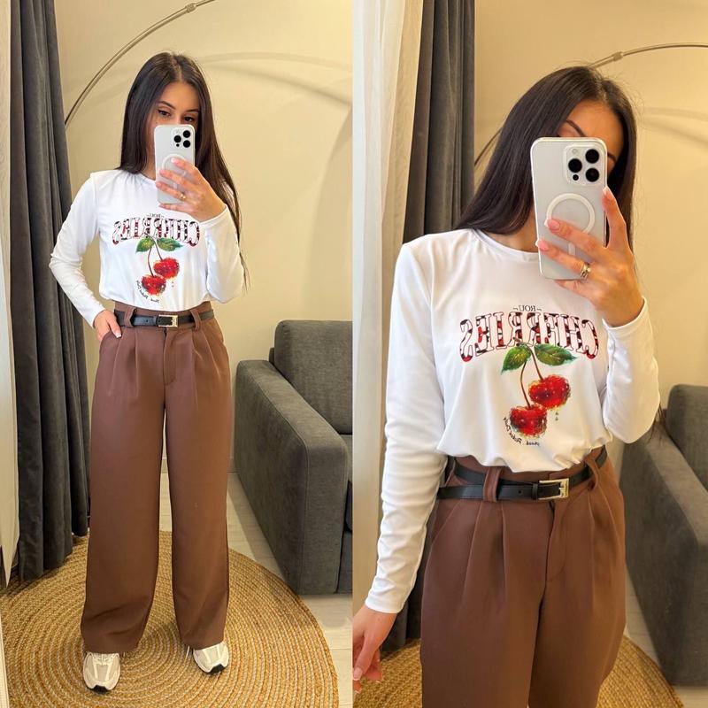 Брюки с ремнем арт. kam. 920 Тканина: костюмка Ремень входит в комплект Размеры: 42-44, 46-48, 50-52 Цвета: коричневый, серый, черный, бежевый Лонгслив арт. kam. 211 Размер: 42-44; 46-48; 50-52 Ткань: микродайвинг (полиэстер – 60% вискоза – 15% эластан – 25%) рисунок печать по ткани 600 грн