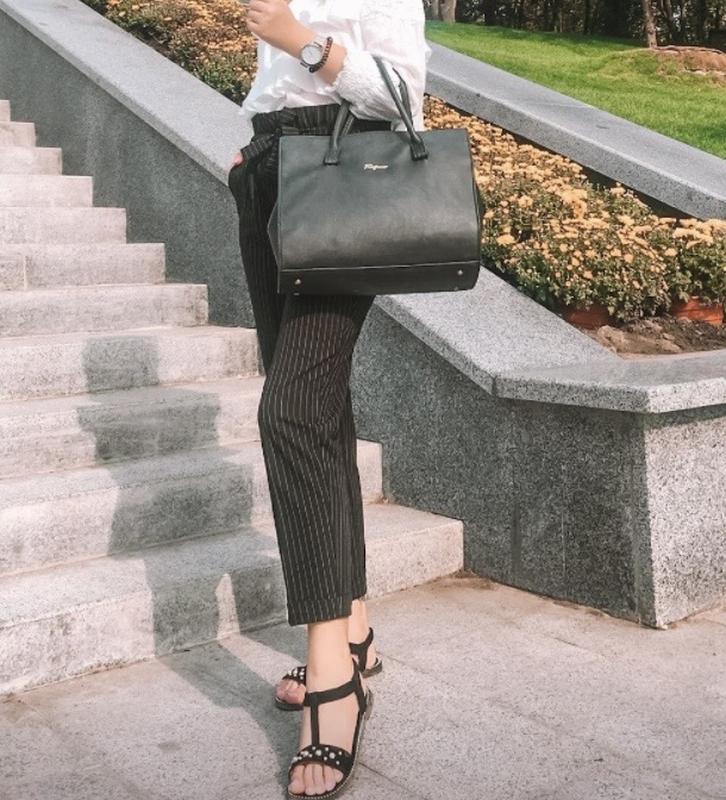 Жіночі чорні брюки в смужку з високою посадкою, розмір S