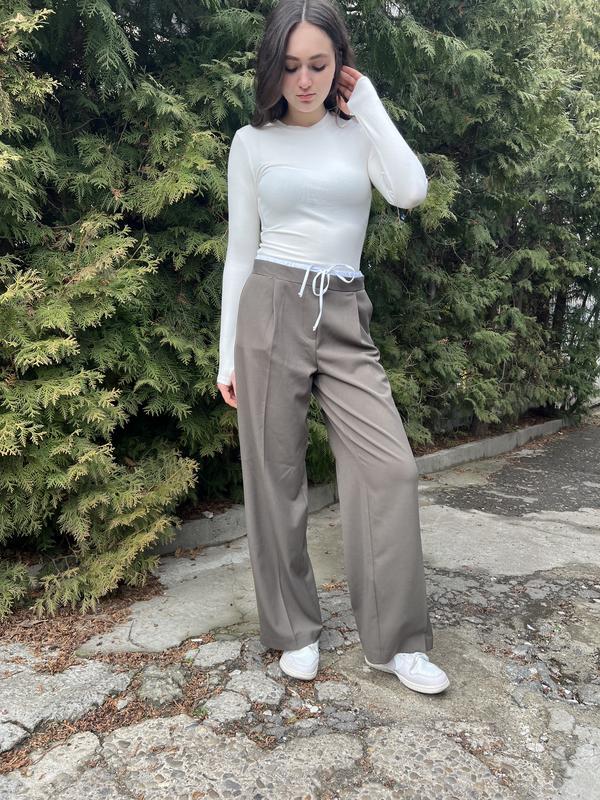 Стильні брючки кльош з стильним поясом, що затягується на шнурівку. Функціональні кармани, неймовірно зручні,