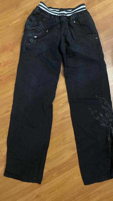 Брюки свободного кроя с красивой вышивкой,цвет черный