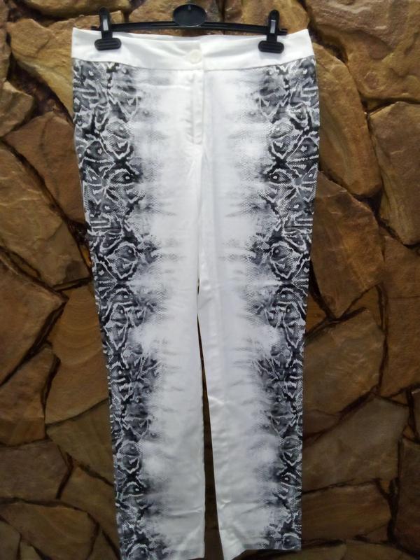Стильные белые штани, стрейч по бокам змеиный принт 97%-котон. Качество супер! ПОТ-42 ПОБ-50 Посадка спереди -26 Посадка сзаду-40 Длина -101