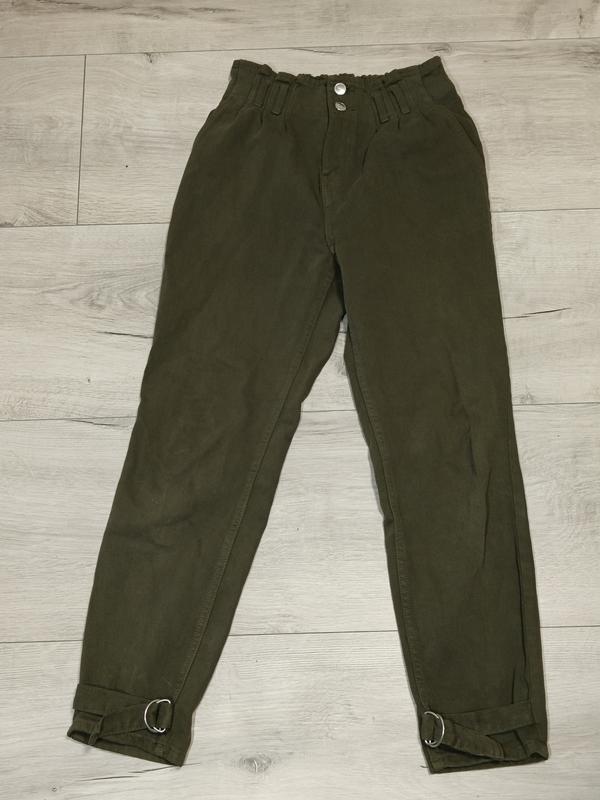 Классные джинсы зеленого/хаки цвета. размер 34 модель схожа на мом