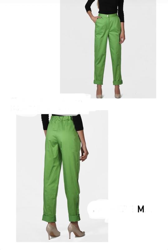 Стильні брюки від українського бренду одягу Merveis. Висока талія, кишені, звужені к низу, насичений колір. 100 % бавовна. В поясі позаду вшита резинка. Заміри: довжина 111 см, крок 75,5 см ПОТ33(39) стегна 100.