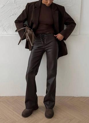 🔥NEW 🔥 штани ▪️ мод 434 ◾️ткань: матовая качественная экокожа ◾️цвета: шоколад ◾️SM ; ML Высокая посадка, качественная стрейчевая эко кожа, хорошо тянется и садится по фигуре. Регулируются шнуровкой Размеры SM | ML Талия : 60-68 см | 69-76см Стегна : 88-95 см | 96-101см