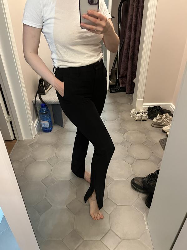 Черные брюки, прямые, с разрезами, тянется, красиво садятся. Мои параметры: талия 72, бедра 97, рост 165