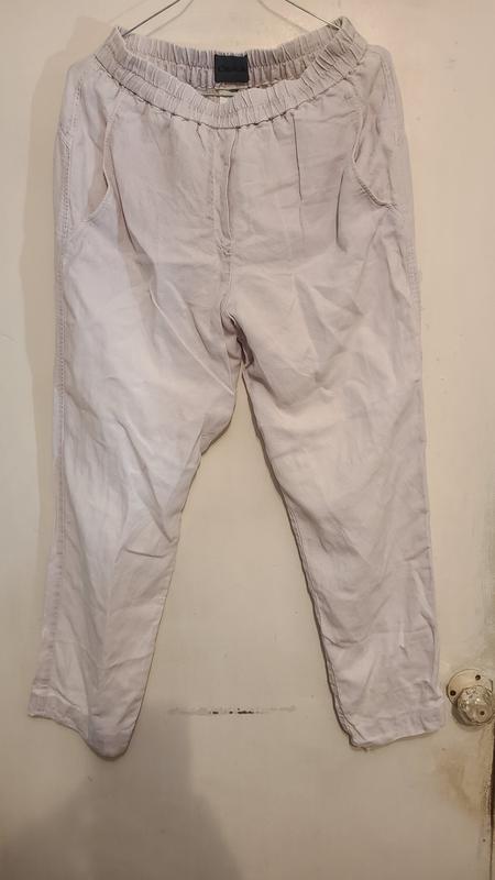 Полуобхаат талии 37-39 (резинка) по боковому шву 107,по внутреннему 72,полуобхват бедер 62,посадкв перед 32,хлопок-лен.