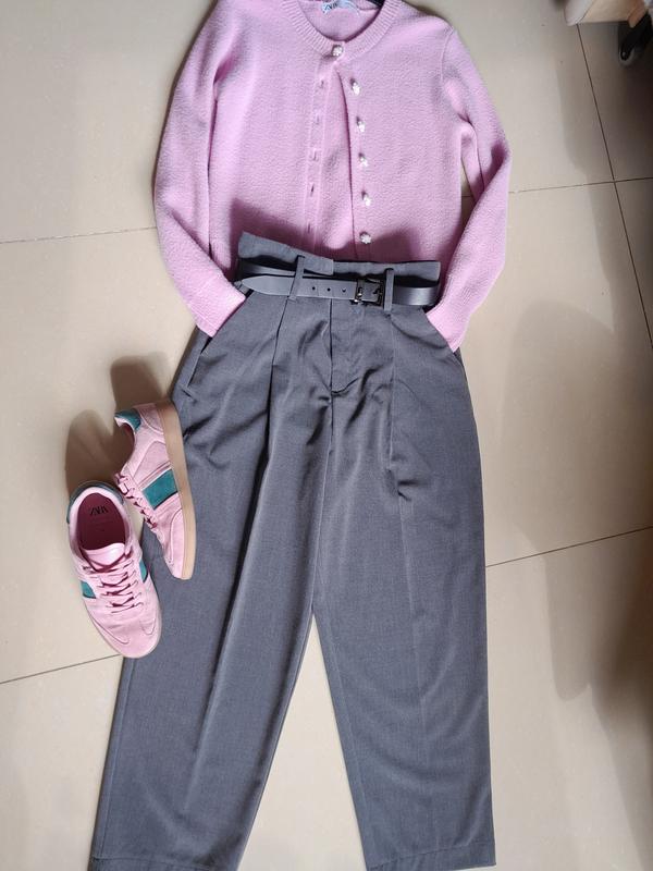 Классирующие брюки Zara с защелками, ткань очень приятная, как бархат, более мигающий цвет,пот 34,5 пост 55,длинная 94