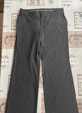 Широкие прямые черные брюки, качественные. Состав: полиестер с шерстью 50/50. ПОТ - 42.5 см ПОБ - 52 см Длина по внешнему шву - 101 см Длина по внутреннему шву - 79 см Высота посадки спереди - 25.5 см Высота посадки сзади - 36,5 см Ширина штанины внизу - 26.5 см.