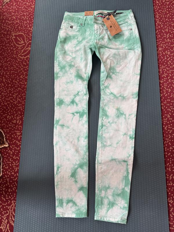 Новые стрейчевые джинсы/брюки с оригинальным принтом. Размер 26 по ширине и 32 по длине