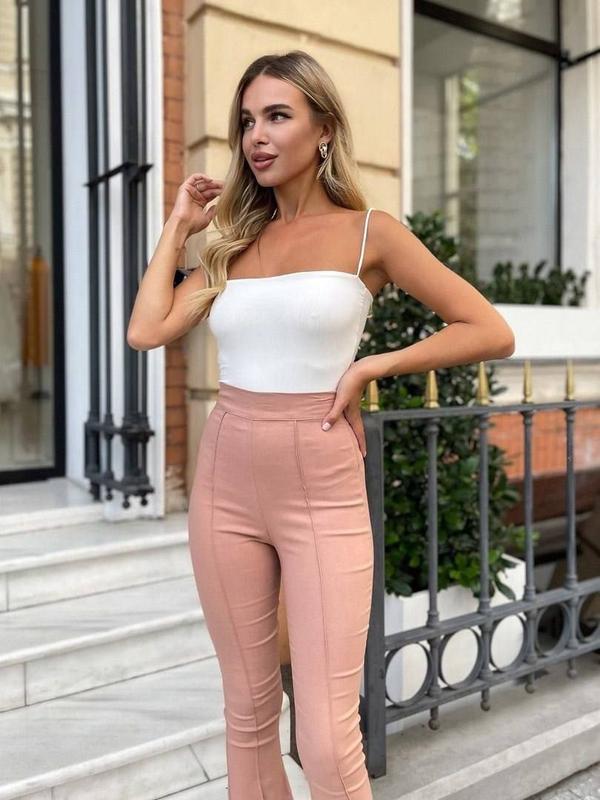 Мод. 2069 Стильные брюки клэш. ✔Размеры пудра - 42-44, 44-46 ✔Ткань - Джинс Бенгалин 🔝🔝🔝Отличная КАЧЕСТЬ!!🔝🔝🔝