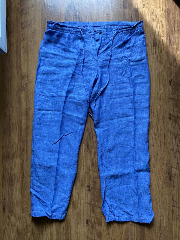 ПОТ 45 см - можно стянуть завязками Длина 90 см Глубина промежности 23 см с переда к шву, 38 см сзади до того же шва Цвет более спокойный синий, чем на фото