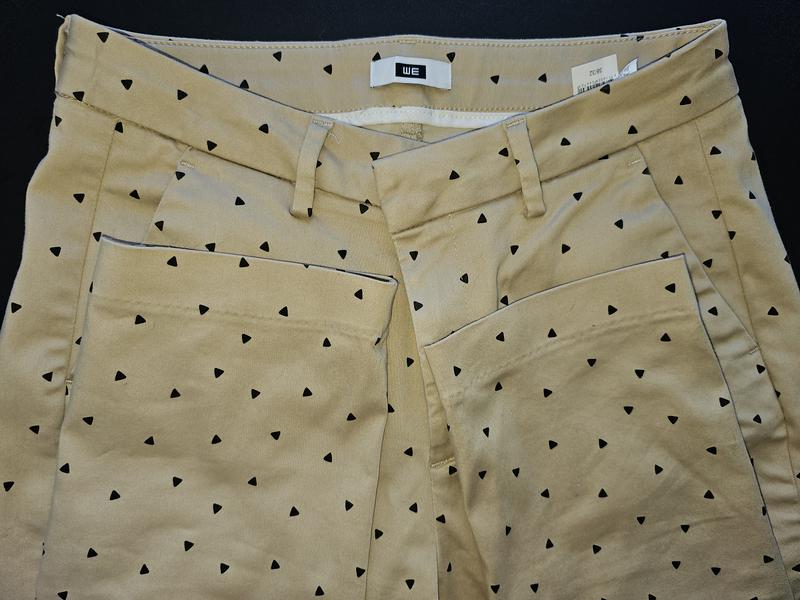 Брюки летние, бежевые с сердечками. Укороченные (чесь типа бриджей). Оделала 1 раз. Очень мягкая ткань. Комфортны на жаркую погоду.