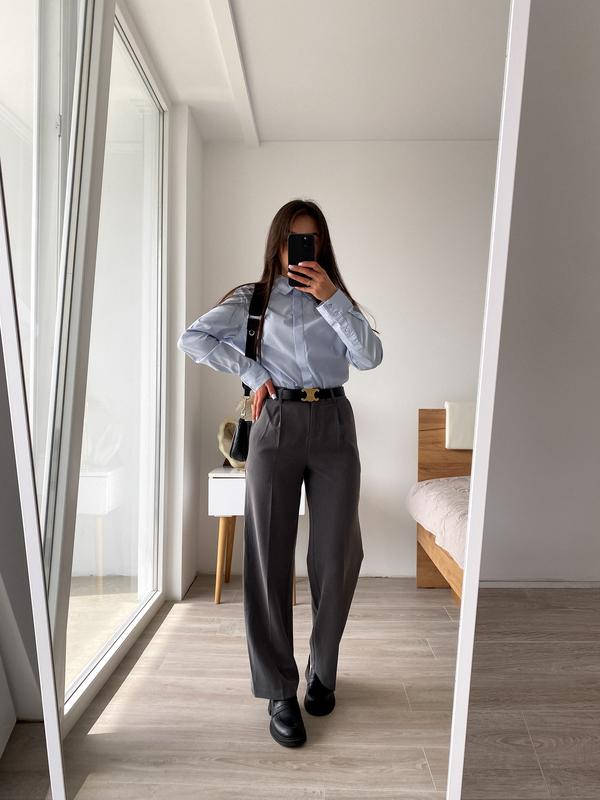Серые брюки прямого кроя