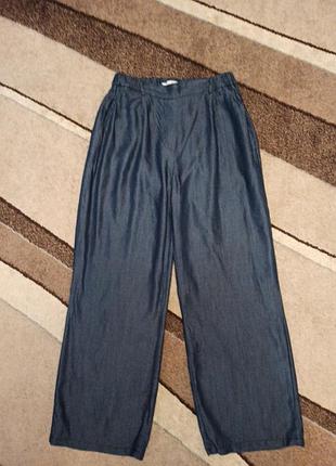 Брюки палаццо из лиоцелла (евкалиптовое волокно), очень комфортные для лета. Пояс на резинке, карманы, цвет "джинс". Ширина по поясу 37 см, по бедрам 60 см, общая длина 108 см, по внутреннему шву 76 см. Продажа по полной оплате на карту.